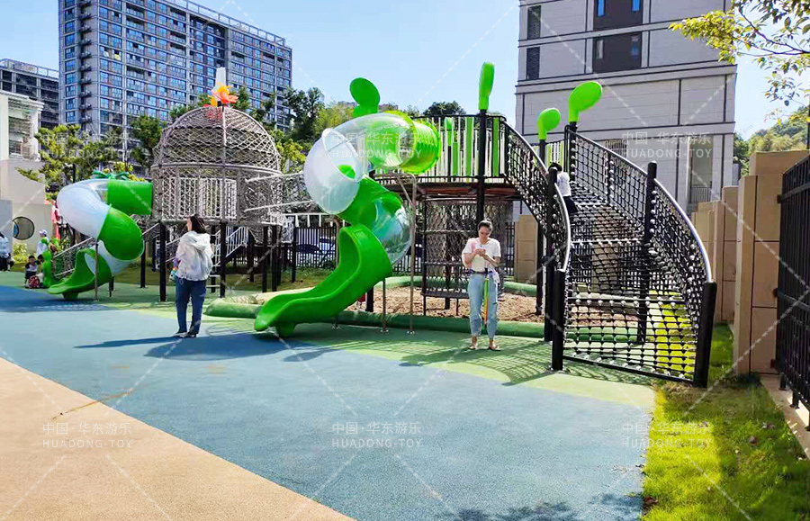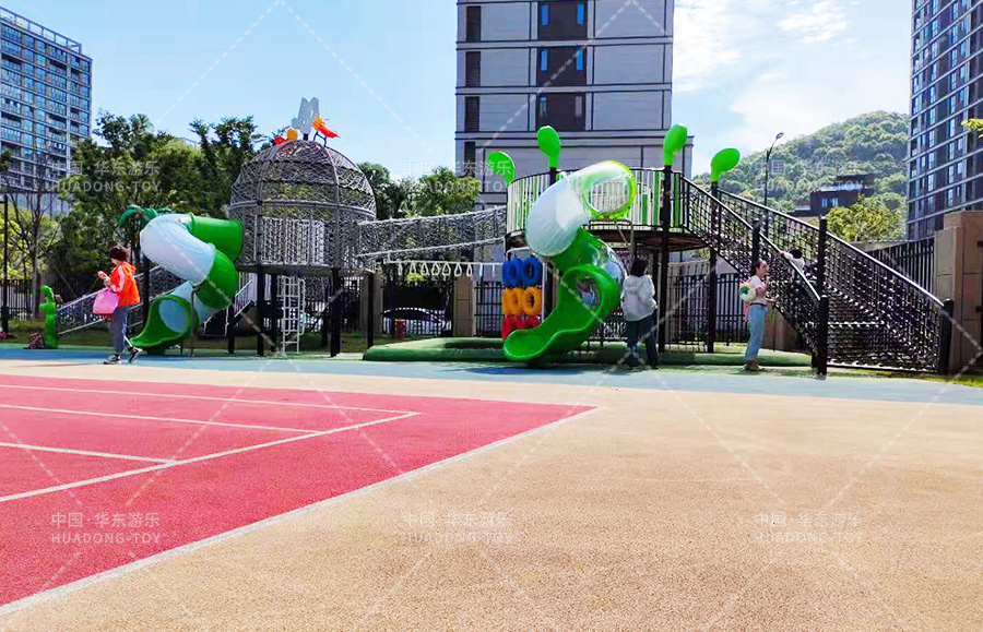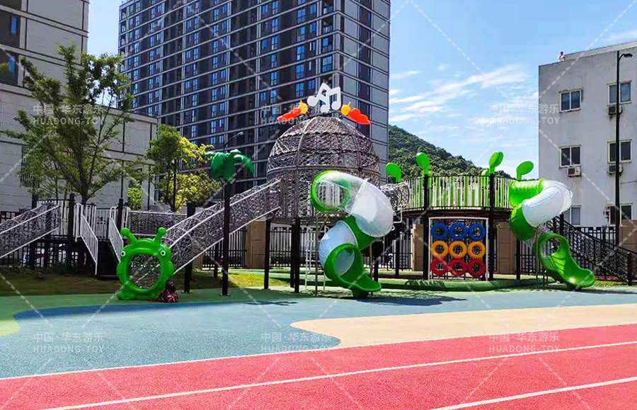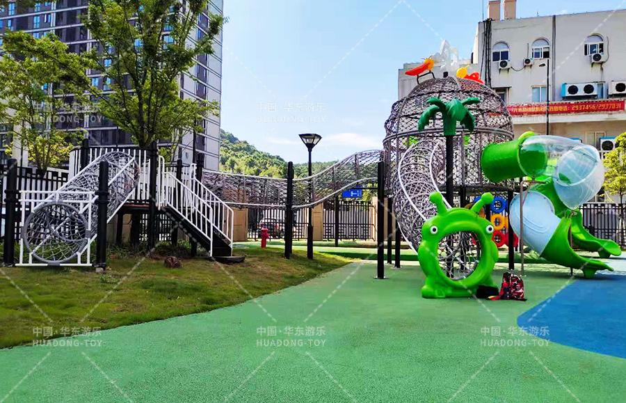 舟山市畚斗岙幼儿园此次选用的是又乐鱼官方游乐自主研发和设计的网绳系列户外滑梯组合,具备了爬网、钻洞、滑梯、滑桶、吊环、攀爬梯、沙池等游乐设备,能够让小朋友在玩耍中得到很好的锻炼和学习。