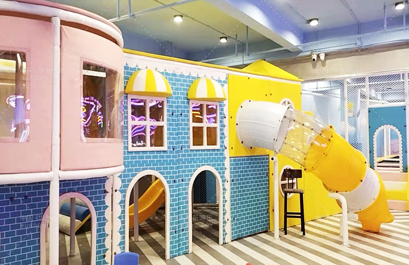 • 奥康潮玩城是一个综合性的室内淘气堡儿童游乐园,整个项目设计了小朋友喜欢的滑梯、亲子互动、角色扮演、海洋球、游戏小屋、攀爬网等功能为一体的室内儿童游乐园。