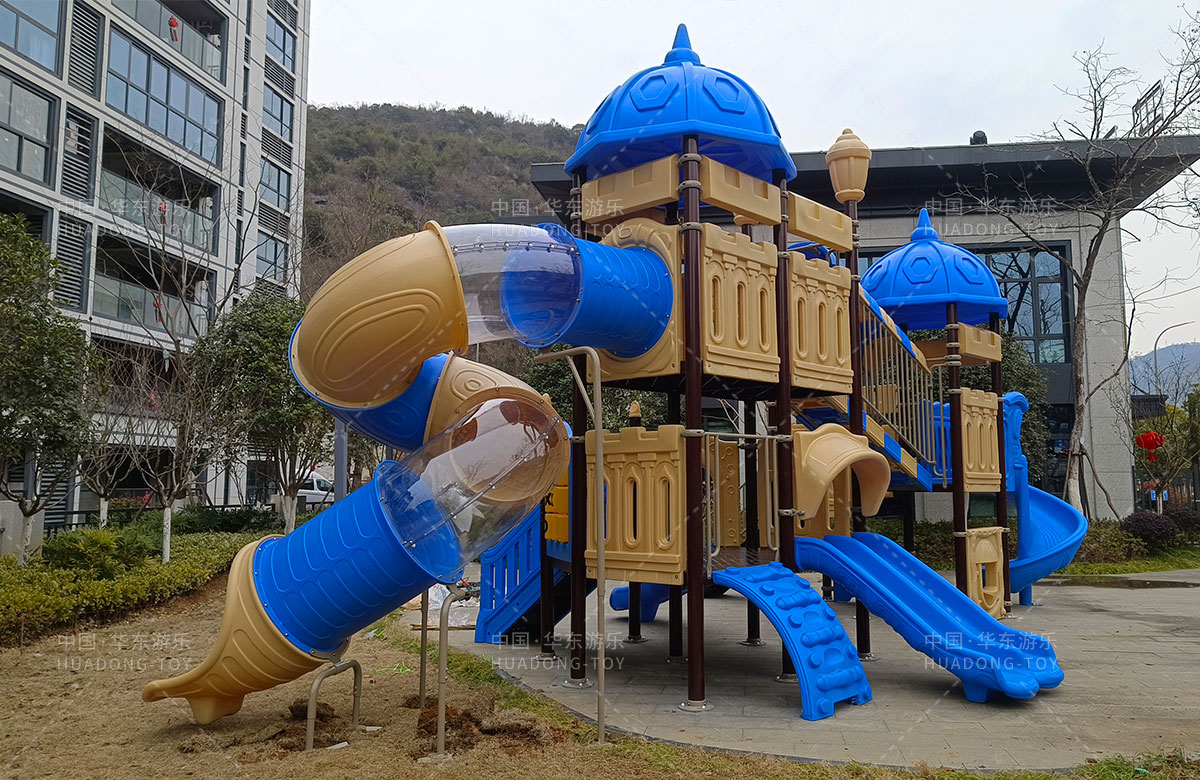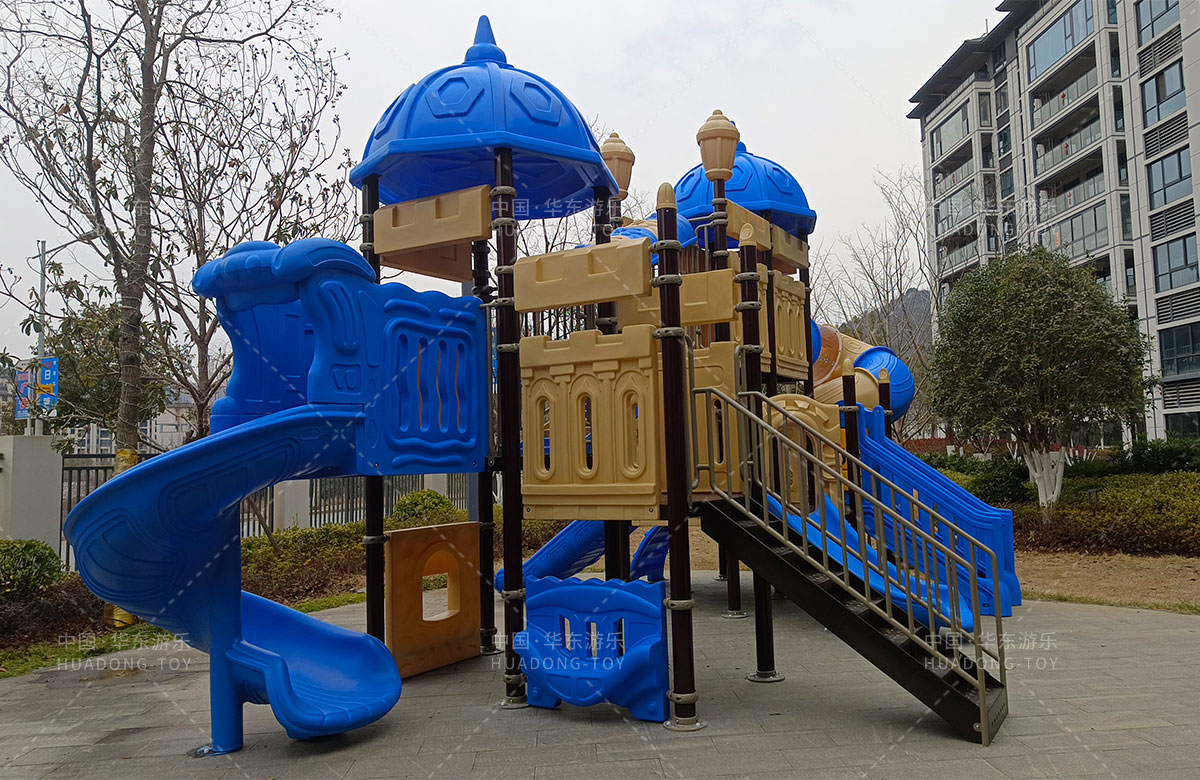 该小区选用的是乐鱼官方游乐自主研发和设计的别墅屋系列组合滑梯,该滑梯具有颜色艳丽、使用寿命长、功能齐全等特点,深受孩子们和客户的喜爱。