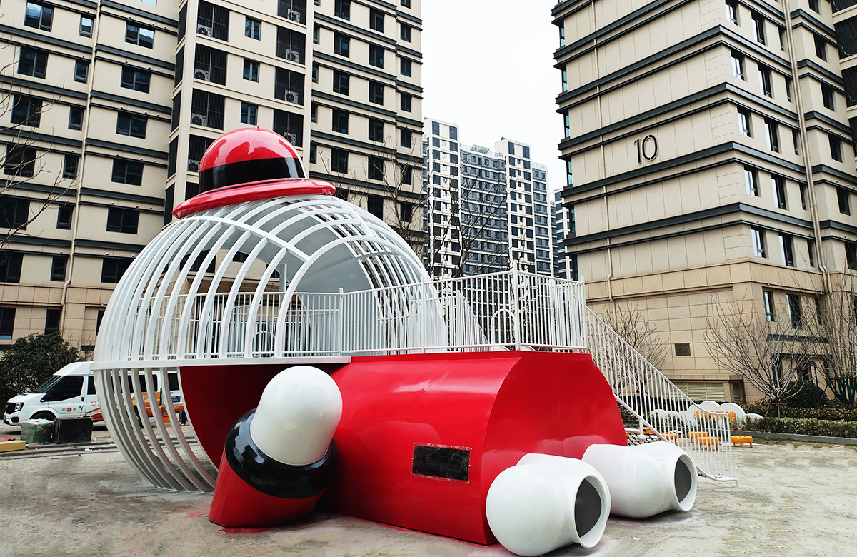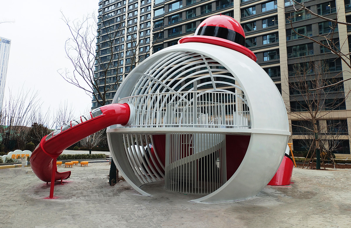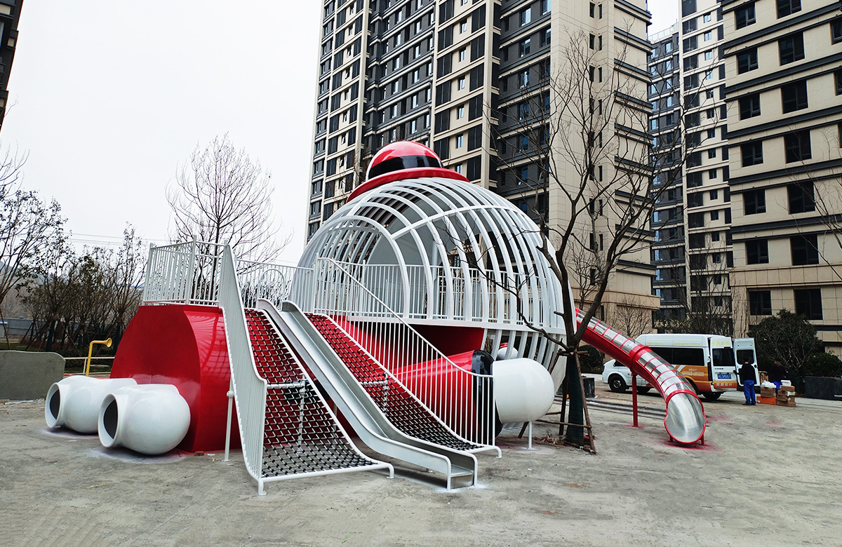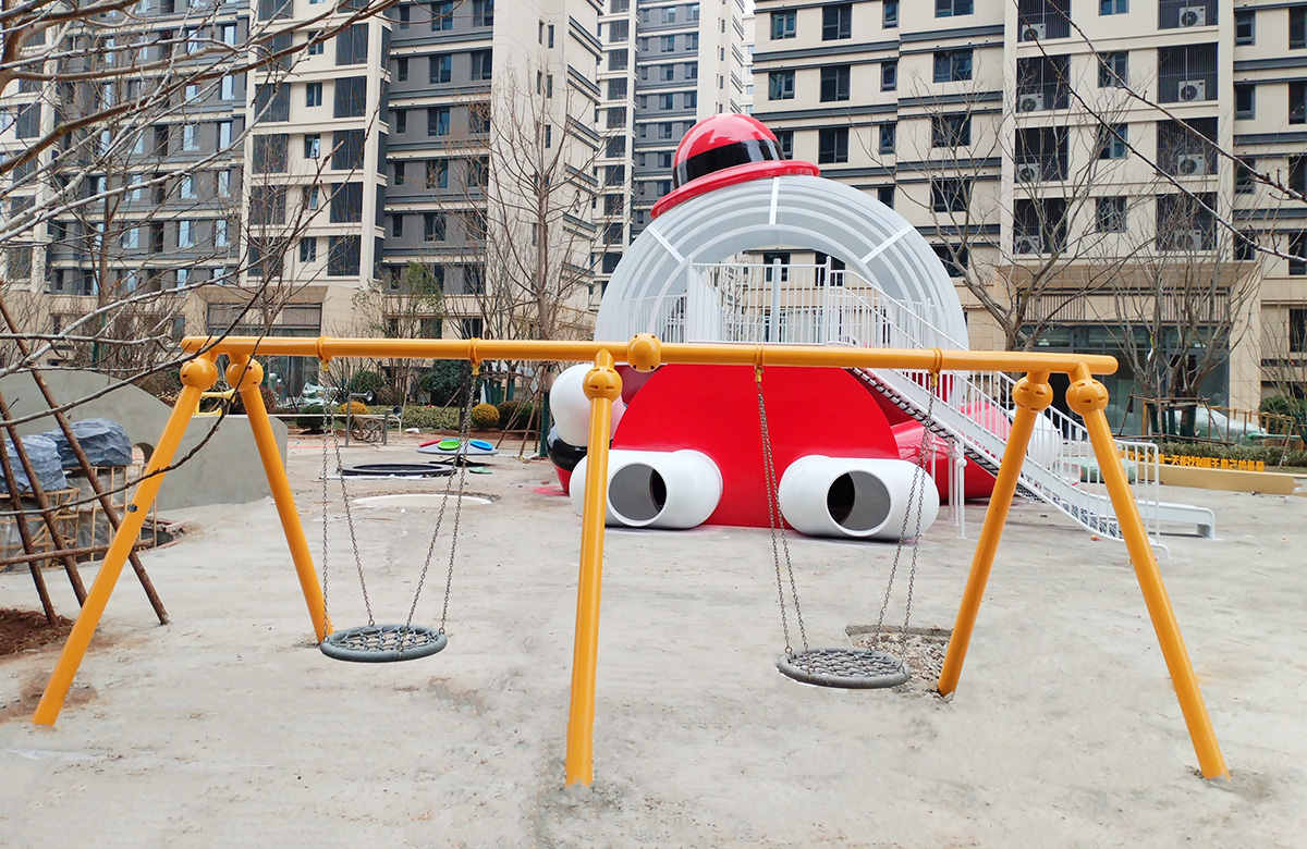 • 山东省银丰玖玺城崇和院选用的是银丰地产旗下的IP主题人物 银小丰 为主题设计的主题性游乐设备,该设备具备了攀爬网、不锈钢滑梯、钻洞等功能,同时为了更好的为生活在小区的人们提供方便和服务,我们还设置了组合秋千、跷跷板、摇摇乐地蹦床等游乐设备,让整个小区的生活变得更加的充满生机与活力。
